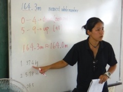 Since then, I started to cooperate with teachers to think about strategies to make students try, but we struggled at first. Though we tried hard, we couldn’t make a dramatic change during the 1st year. The students were very nice and friendly, but when it came to during teaching them math, it was hard to get them under control so that we could teach our lessons to enhance their understanding. This is because they didn’t keep rules such as to sit quietly, to listen to what teachers say, and to respect others. We needed to teach them individually, so my English speaking skills improved but actually, I wasn’t sure about the students’ math skills.