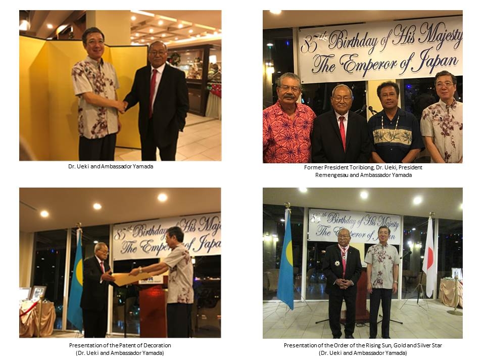 His Majesty the Emperor of Japan has conferred the 2018 Autumn Imperial Decorations upon 135 foreign nationals who have been dedicated to fostering ties between Japan and their own countries in a range of fields. Dr. Ueki has been awarded for the critical role he has played in strengthening bilateral relations and promoting friendship between Japan and Palau in various fields.