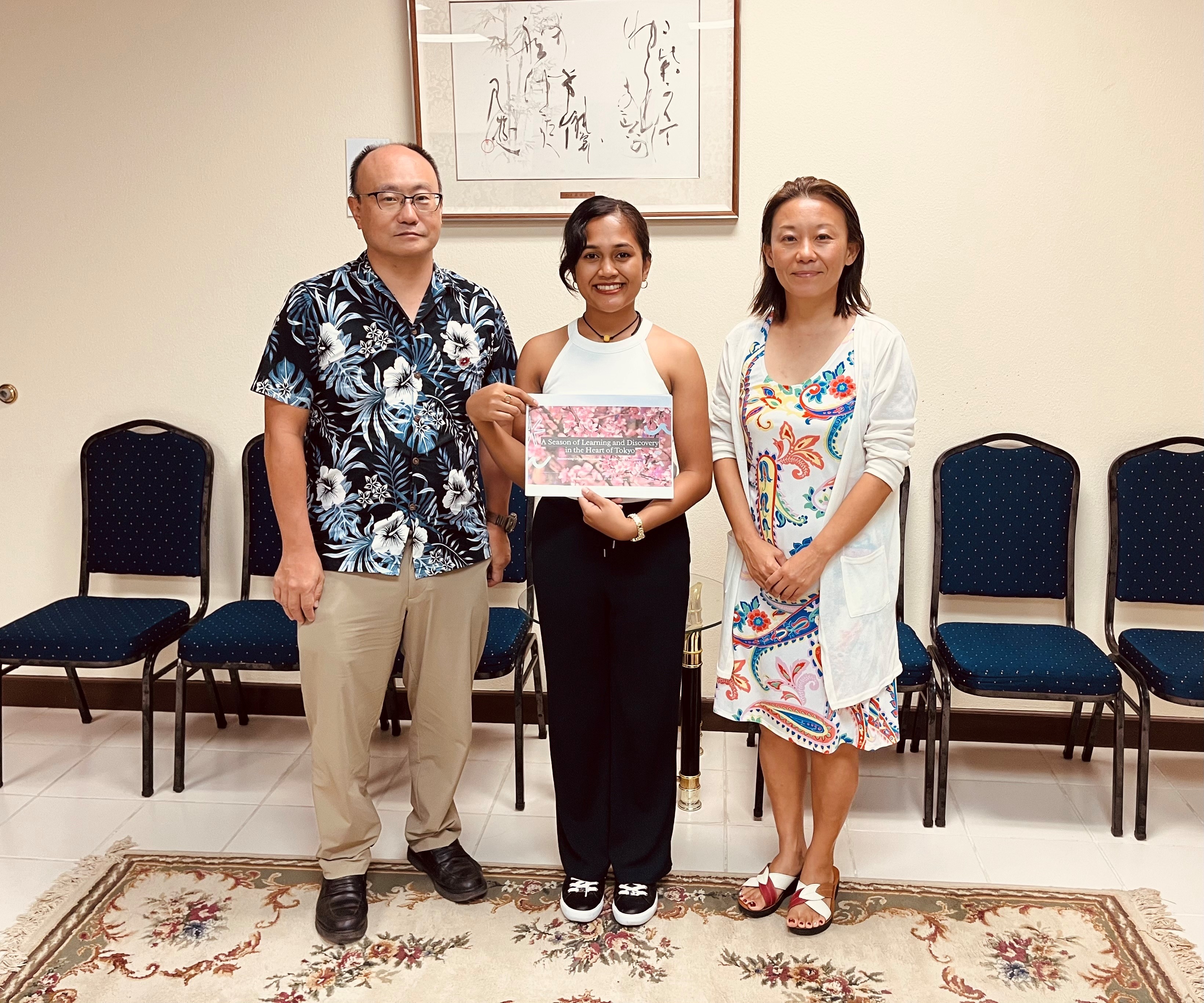 On August 12th, Ms. Britchet Techekii Idelkei gave a presentation at the Embassy of Japan about her experience as a participant in the APIC Pacific Islands and West Indies Student Invitational’s Summer Session in East Asian Studies Program. The Association for the Promotion of International Cooperation (APIC) facilitates various programs aimed at promoting and enhancing international ties, as well as deepening mutual understanding between Japan and countries around the world.