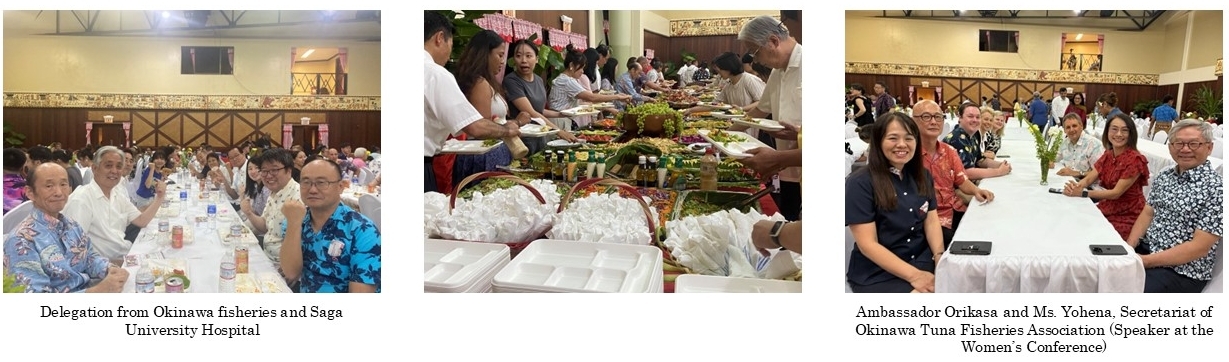 On September 30th, Ambassador ORIKASA Hiroyuki attended the State Dinner Reception for the 31st Independence Day at Ngarachamayong Cultural Center. The event was also attended by the delegation composed by Japan Fisheries Agency, Okinawa prefecture, and Okinawa fishermen, along with Saga University Hospital delegates, who both delivered a presentation at the Women’s Conference earlier that day.