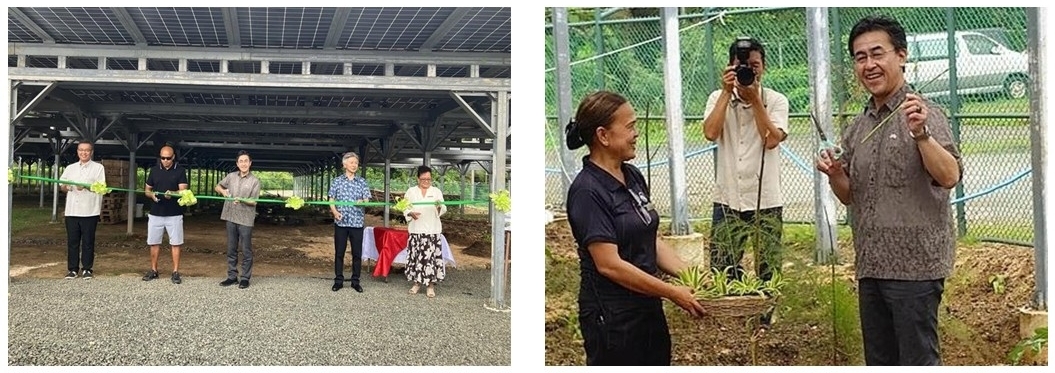 On February 27, 2026, Ambassador KASAHARA Kenichi attended the completion ceremony for the “Introduction of 0.6MW Solar Power and 0.3MWh Storage Battery to Resort Hotel” project, a Joint Crediting Mechanism (JCM) initiative. The project was implemented by SeED Okinawa LLC in cooperation with TOKYU LAND CORPORATION and Pacific Islands Development Corporation. It aims to reduce greenhouse gas emissions by replacing part of the electricity generated by diesel engines with renewable energy.