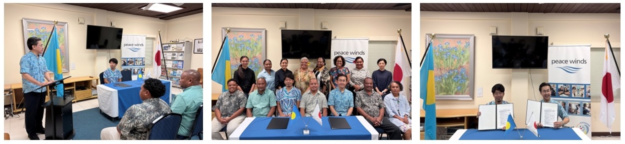 The agreement was signed by H.E. KASAHARA Kenichi, Ambassador of Japan to Palau, and Mr. AMMA Nobumichi, Palau Country Representative of Peace Winds Japan.