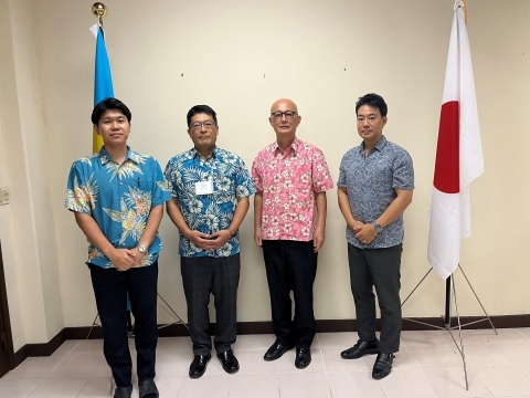 日本海難防止協会による表敬訪問 令和6年1月23日 2024年1月23日、日本海難防止協会シンガポール事務所の石河正哉所長及び同協会の橋本崇史部長が大使館を訪れ、折笠弘維大使とパラオにおける海上安全保障について意見交換を行いました。