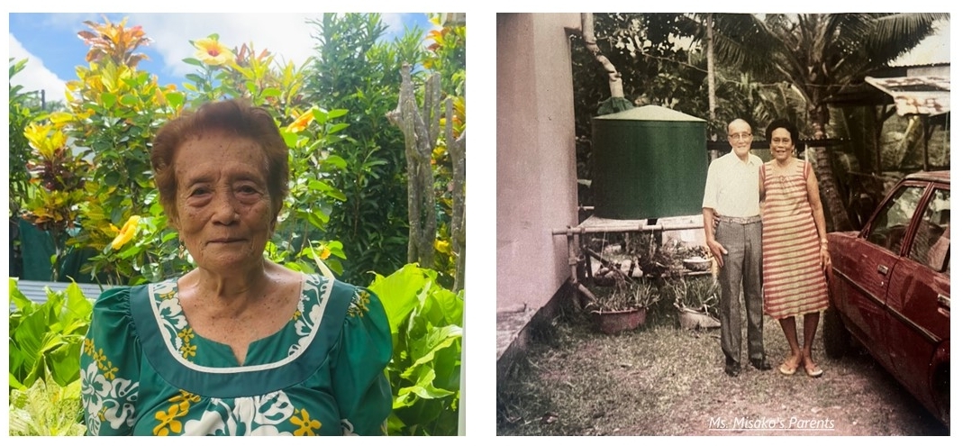 エビル・ミサコ・メレブさん(現在88歳)は、日系パラオ人です。1937年に、アルモノグイ州のイメオンのクレラン・オシレクさんと、東京都出身のミヤザワ・コタロウさんの間に生まれました。ミヤザワさんは、第二次世界大戦前にアルモノグイ州のパイナップル缶詰工場で会計士として働いていました。現在、ミサコさんは10人の子供と、たくさんの孫や曾孫に恵まれています。