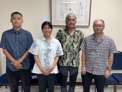 On August 8, 2025, CDA ONO Shunsuke met with professor SAKAMOTO Tatsuhiko from Mie University, Ms. MATSUMOTO Airi, Representative Director of NELCrew, and Mr. SENDA Yuto, sailing coach as JICA Volunteer, and exchanged views on future exchange activities between Japan and Palau, focusing on traditional Palauan navigation techniques.
