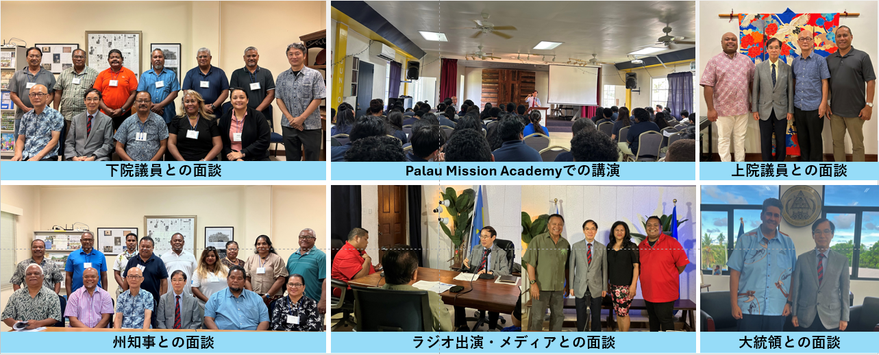 吉野直行慶応大学名誉教授のパラオ訪問 令和7年9月23日 2025年9月15日から19日にかけて、パラオ経済諮問グループメンバーの吉野直行慶応義塾大学名誉教授がパラオを訪問しました。吉野教授はパラオを訪問中に、ウィップス大統領、上院及び下院議員、州知事、学校長及び高校生らと面談しパラオへの貯蓄国債導入について意見交換を行いました。吉野教授は、国営ラジオ番組にも出演し、パラオの経済及び貯蓄国債について説明を行いました。