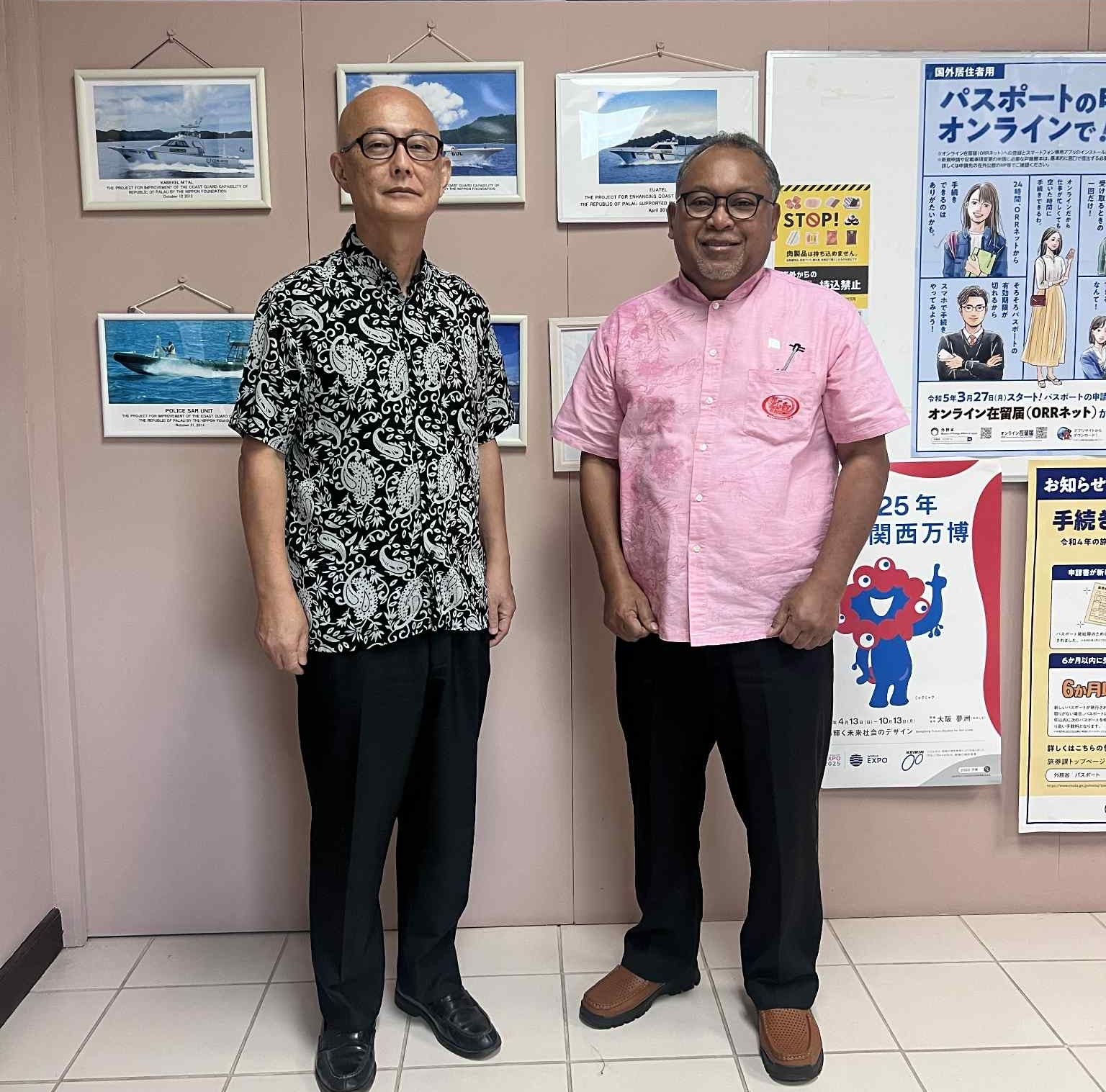 ピーター・アデルバイ在京パラオ大使の当館訪問 令和7年10月3日 2025年10月3日、ピーター・アデルバイ在京パラオ大使は折笠弘維大使を訪問し、日本とパラオ間の観光振興および文化交流について意見交換を行いました。