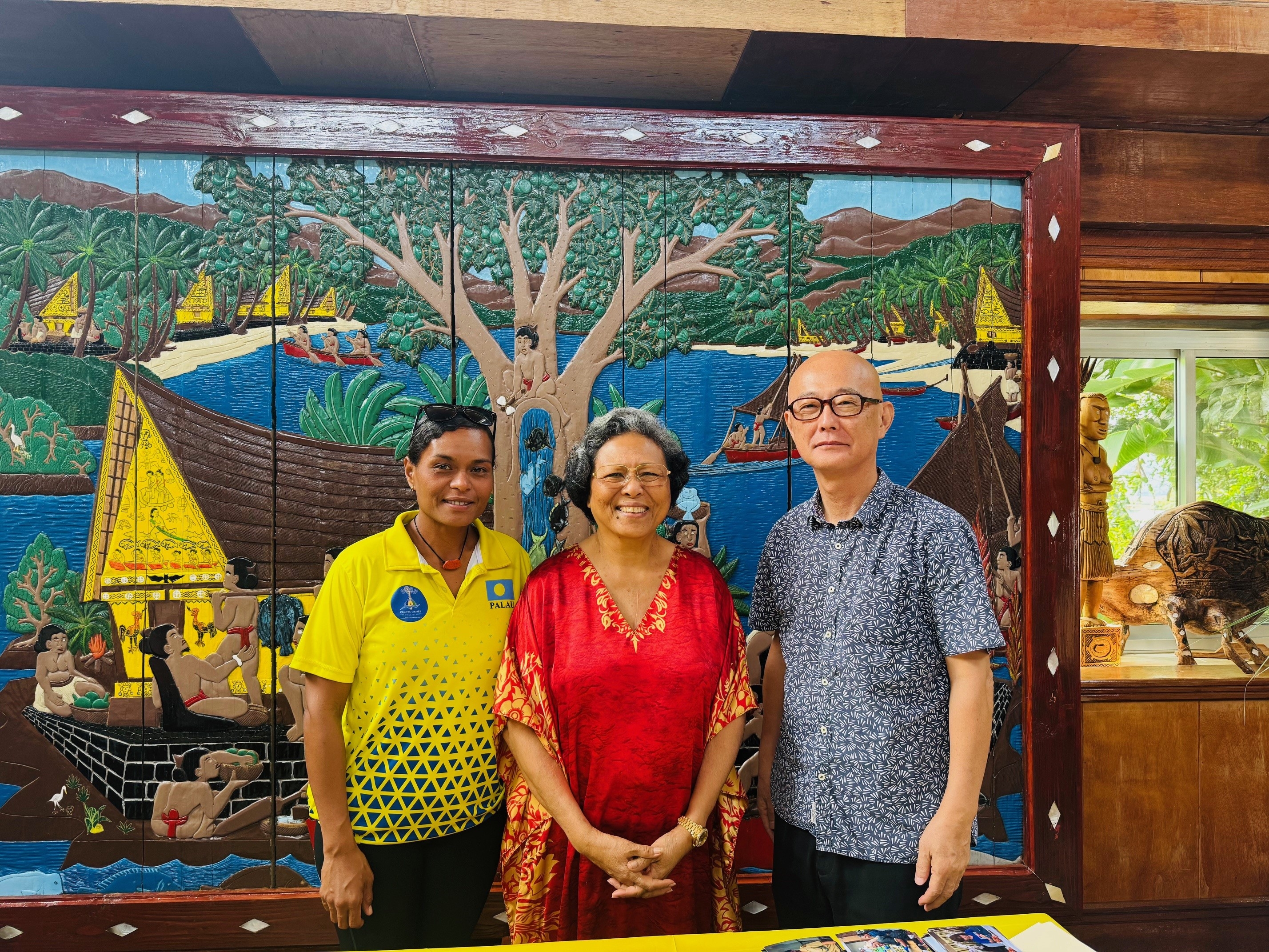 2025年11月6日、折笠弘維大使はビルン・グロリア・サリー伝統的女性大酋長および娘のテエキー・ウロイ・ガルドコウ・サリー氏を訪問し、来たる12月上旬の日本の歌講演、来年2月のよさこい、及び3月の田中美奈子パラオ名誉親善大使の訪問を含めた文化交流事業について意見交換を行いました。