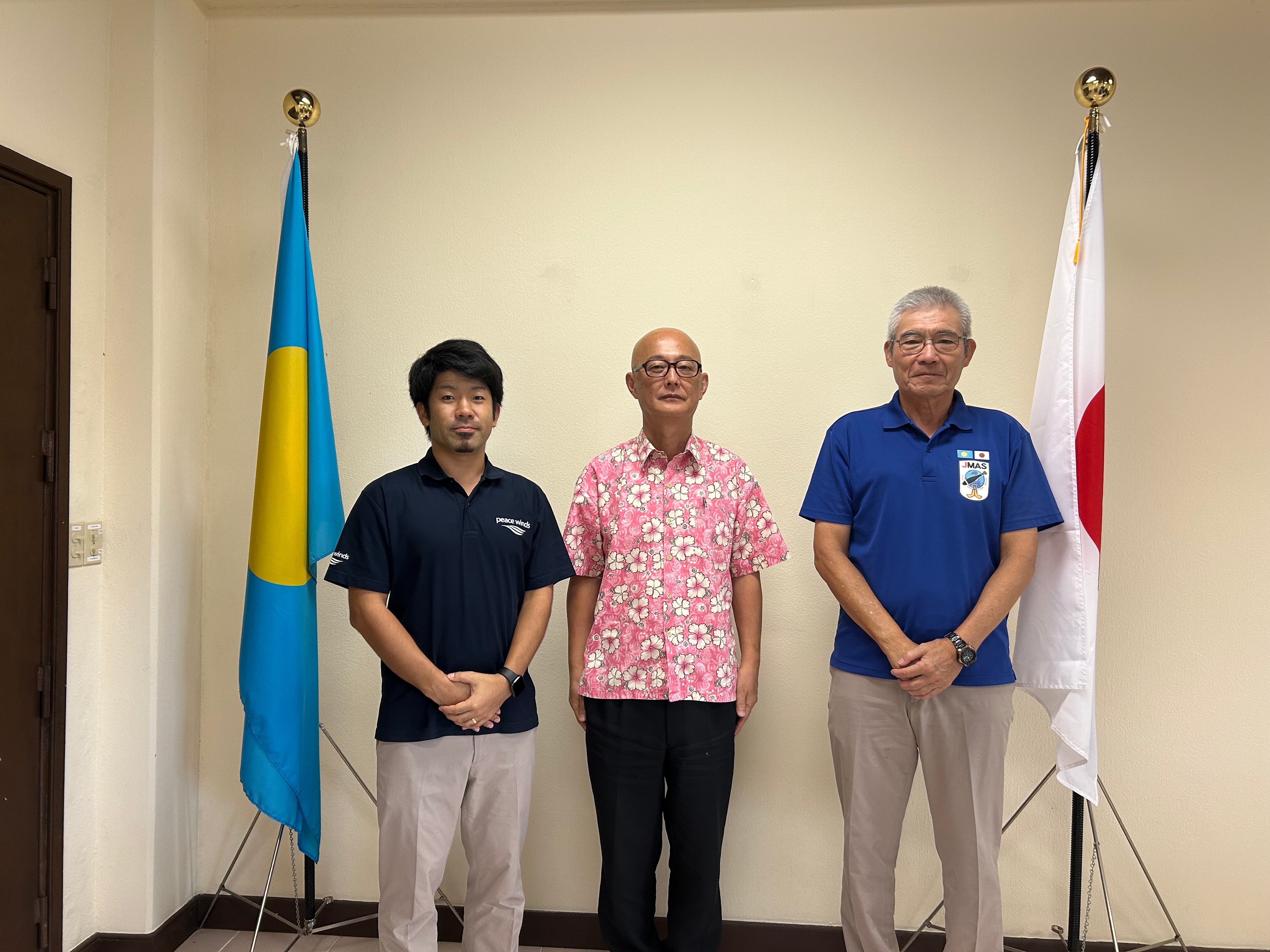 JMASパラオ事務所長及びピースウィンズ・ジャパン・パラオ事務所長の大使表敬 令和7年12月5日 2025年12月5日、島田正登日本地雷処理を支援する会(JMAS)パラオ事務所代表と安間叙通ピースウィンズ・ジャパン・パラオ事務所代表が折笠弘維大使を訪問し、パラオにおけるそれぞれの活動について意見交換を行いました。