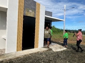 参加者は、ガッパン州のコクサイ公園に新設された衛生施設の引渡式に出席しました。92,694米ドルの草の根無償資金協力によって建設された同施設は、バリアフリー対応のトイレ、手洗い場等が備わっています。本事業は、公衆衛生の向上とコクサイ公園の周辺コミュニティの集いの場としての機能強化に貢献すると共に、パラオを訪れる日本からの観光客にも利用されることととなるでしょう。