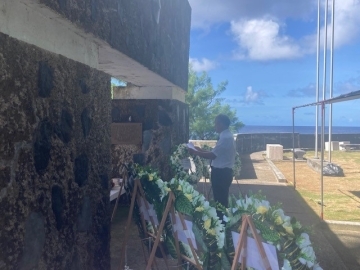 令和7年度第6次遺骨収集団による追悼式の開催 令和7年12月12日 2025年12月12日、令和7年度第6次遺骨収集団による追悼式がペリリュー島の「西太平洋の戦没者の碑」前にて行われました。当館小野臨時代理大使が出席し追悼の辞を読みました。
