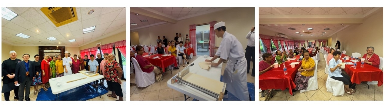 香川県主催「パラオうどん交流会」の開催 令和7年12月19日 2025年12月19日、香川県主催、在仙台パラオ共和国名誉総領事の岩田直行氏、石丸製麺株式会社参加による「パラオうどん交流会」がガラマヨンセンターにて開催されました。うどん職人によるデモンストレーション、試食会が行われ、参加者は皆美味しそうに打ち立ての香川県のうどんを食べていました。