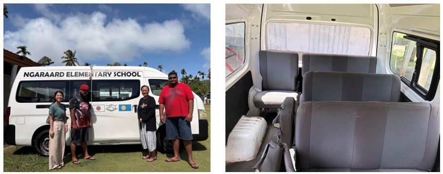本事業は2016年に完了し、ガラルド小学校の児童が安全かつ快適に通学できるよう、15人乗りのスクールバス2台が供与されました。同校では遠方から通う児童が多く、暑さや雨の影響に加え、老朽化したスクールバスの故障や安全面の問題により、通学や学校活動に支障が生じていました。また、ガラルド州から離れたコロール州で行われる学校行事や校外活動への参加も難しい状況でした。